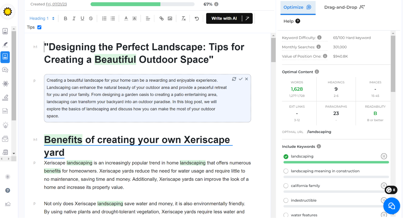 It will automatically integrate target keywords and competitive insights into your content.