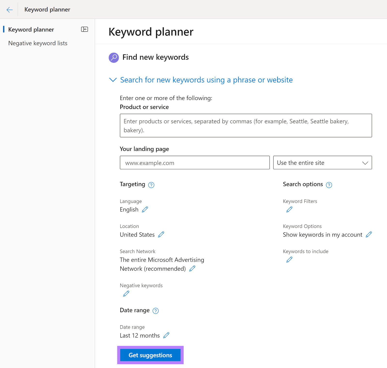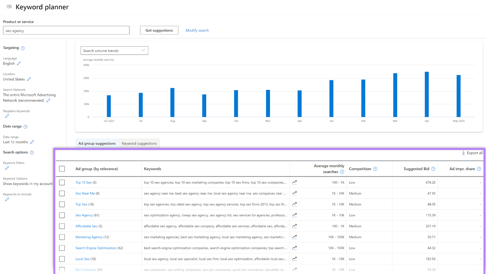 Microsoft Advertising Keyword Planner gives you access to unique keyword data specific to the Microsoft Search Network.
